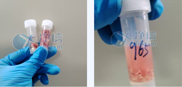 大塊組織剪碎前后對比圖