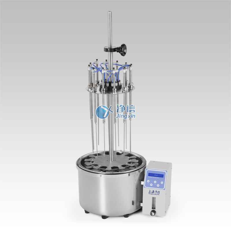 SD-12水浴氮吹儀采用微電腦控制技術和PID控制方式結合而成的高精密度控制儀器,其工作原理是將氮氣快速、連續、可控的地吹到加熱樣品表面,根據被濃縮溶劑的蒸發速度和沸點、設定加熱溫度,實現大量樣品的快速無氧濃縮。水浴氮吹儀包括底座和支架裝置、樣品架和氣體分配系統。試管通過帶彈簧的試管夾和支撐盤來固定位置。每個樣品位都有數字編號;氣體通過流量計到達氣體分配系統,靈活的引導管將氣體導入每個位置的閥和不銹鋼針,將氣體吹至樣品表面,從而使溶劑快速揮發。根據試管大小和溶劑多少,各導氣管可獨立升降至合適的高度。