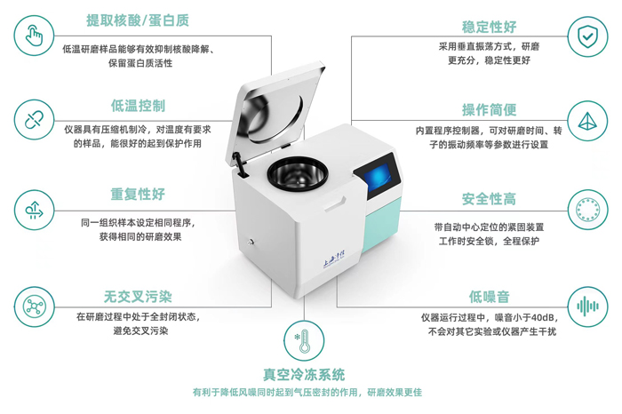 1、提取核酸/蛋白質 :低溫研磨樣品能夠有效抑制核酸降解、保留蛋白質活性;